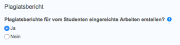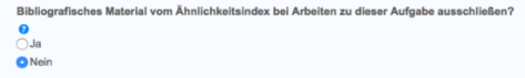 Legen Sie fest, ob Ähnlichkeitsberichte für die für die Aufgabe übermittelten Arbeiten generiert werden sollen. Wenn Sie für diese Einstellung Ja ausgewählt haben, fahren Sie mit Schritt 2 fort. Wenn Sie es vorziehen, für die Einstellung Nein auszuwählen, fahren Sie mit Schritt 3 fort.