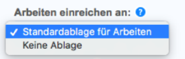 Wenn der Administrator die Ablageoptionen für eine Lehrkraft aktiviert hat, werden zwei bis vier Optionen in der Dropdown-Liste Arbeiten einreichen an: angezeigt. Wählen Sie aus der Dropdown-Liste aus, wohin Arbeiten übermittelt werden sollen. Mit den bereitgestellten Einstellungen können Sie festlegen, ob Arbeiten in einer Turnitin-Standardablage für Arbeiten, in der Arbeitsablage Ihrer Bildungseinrichtung, in einer vom Studenten ausgewählten Arbeitsablage oder gar nicht gespeichert werden sollen.
