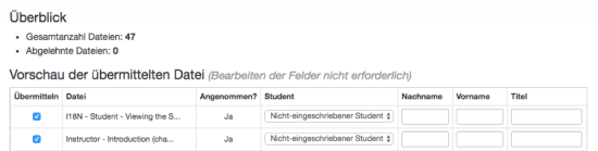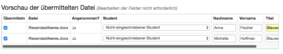 - Wenn alle gewünschten Dateien hinzugefügt wurden, überprüfen Sie die Studentennamen und die Titel der Arbeiten.