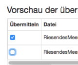 - Sie können Dateien vom Hochladevorgang ausschließen, indem Sie das Kontrollkästchen links vom Dateinamen in der Spalte Übermitteln deaktivieren.