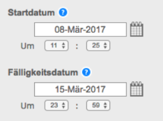 - Wählen Sie das Datum und die Uhrzeit für den Start und die Fälligkeit aus, sowie das Veröffentlichungsdatum und die -uhrzeit (sofern vorhanden).