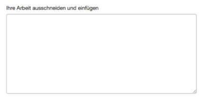 Tipp: Um Text zu kopieren und einzufügen, markieren Sie den zu übermittelnden Text in einem Textverarbeitungsprogramm, und wählen Sie im Menü Bearbeiten die Option Kopieren aus. Um den Text in das Textfeld in Turnitin zu übertragen, klicken Sie in das Textfeld auf der Übermittlungsseite, und wählen Sie im Browser-Menü Bearbeiten die Option Einfügen aus.