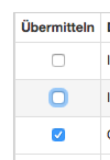 - Sie können Dateien von der Übermittlung ausschließen, indem Sie das Kontrollkästchen links vom Dateinamen in der Spalte Übermitteln deaktivieren.