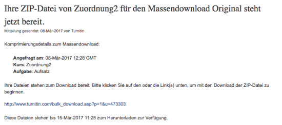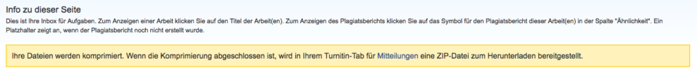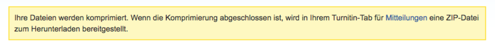 - Der Vorgang wird jetzt im Hintergrund durchgeführt, und es wird eine ZIP-Datei mit den angeforderten Dateien erstellt. Während der Verarbeitung der Dateien können Sie Turnitin wie gewohnt verwenden.