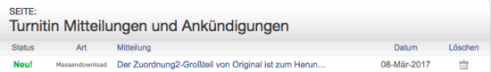 - Auf der Registerkarte „Nachrichten“ finden Sie eine neue Nachricht von Turnitin. Öffnen Sie diese, um auf den Link zum Herunterladen zuzugreifen.