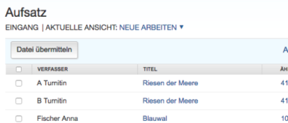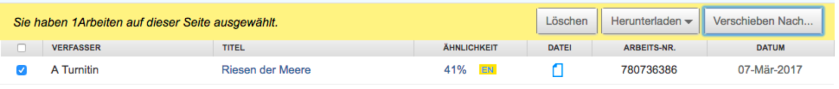 - Allgemeine Arbeitsablage – Enthält Werke, die zuvor im Rahmen von Kursen und Aufgaben bei Turnitin übermittelt wurden.