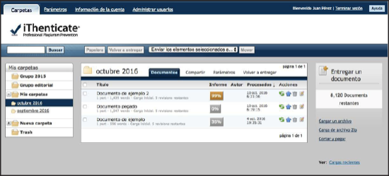 Una vez registrado, visualizará la página de inicio de iThenticate.