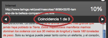 - Fuentes de coincidencias: La lista de fuentes que coincidieron con el texto.