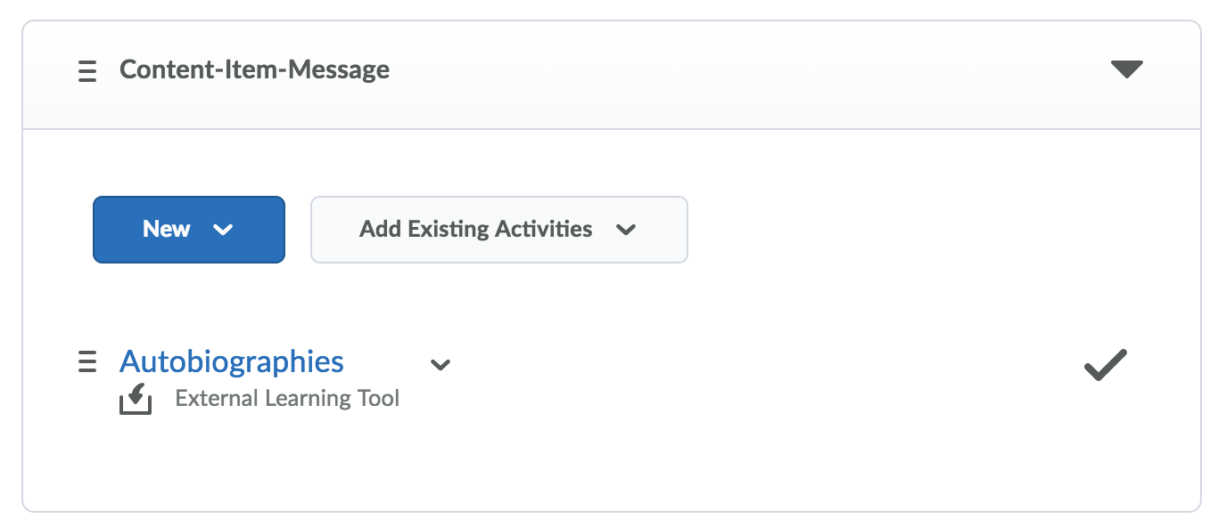 This is a separate integration route to the Brightspace extended LTI V2 integration found in the ‘Assignments’ tool for Turnitin. Your institution must configure the Quicklink (CIM) integration for use in the ‘Content’ tool.