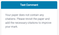 A text comment is an overall comment given by your instructor regarding your whole paper. This may include comments on positive aspects of your paper, how you can improve in future, or any issues with your paper.