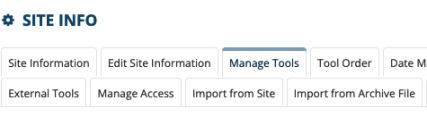 From the Site Info page, select the Manage Tools tab.