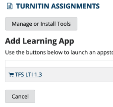 If Turnitin is the only LTI app configured, you'll be shown the LTI configuration screen.