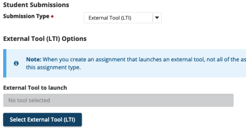 From the External Tool section that appears, use the Select External Tool (LTI) button.