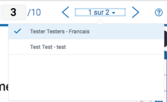 - Cette liste déroulante répertorie toutes les copies rendues pour un exercice donné, avec le nom des étudiants. Pour consulter une autre copie, cliquez tout simplement dessus.