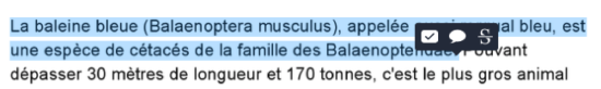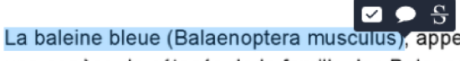 - Vous pouvez aussi sélectionner du texte, puis cliquer sur l’icône rectangulaire QuickMark dans la barre d’outils de commentaires. Votre annotation est alors directement liée au texte sélectionné.