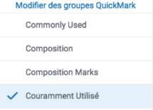 - Sélectionnez un groupe QuickMark dans le menu déroulant en cliquant sur le nom du groupe en haut de la zone QuickMark, puis sélectionnez l’annotation QuickMark que vous souhaitez laisser.