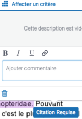 Veuillez noter que l’option Affecter un critère apparaît dans les options de commentaire bulle si une rubrique est liée à l’exercice en question.