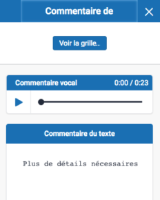 - Vous pouvez alors écouter les commentaires vocaux de votre enseignant à partir du volet latéral Commentaire de l’enseignant. Cliquez sur l’icône en forme de triangle à gauche de la zone du commentaire.