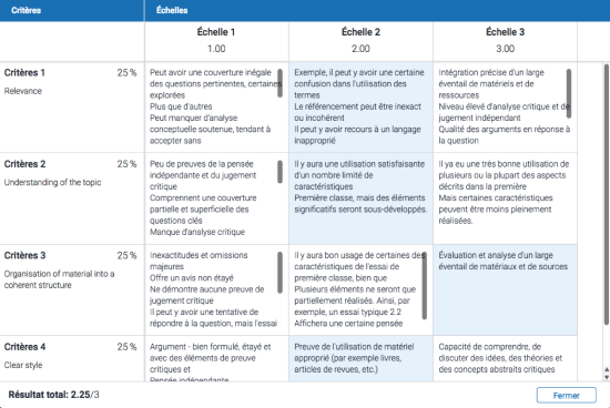 Si l’enseignant a utilisé une grille d’évaluation pour noter votre copie, vous pouvez consulter les échelles et critères associés.