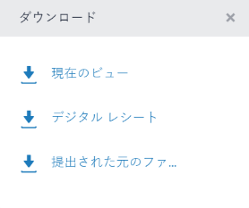 2. 現在閲覧しているレポート(類似性、評価およびETSのフィードバックを含む)、Turnitinに提出した元のファイル、または提出用のデジタルレシートを選択してダウンロードします。