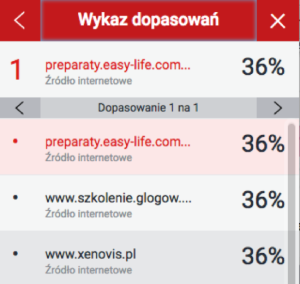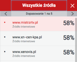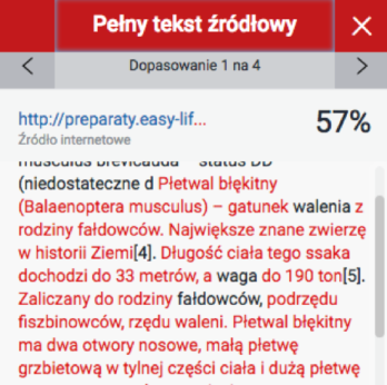 1. Aby zobaczyć więcej informacji na temat danego dopasowania źródła, kliknij flagę z numeremw treści pracy.