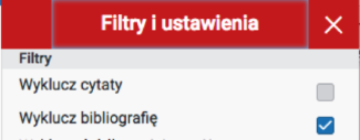 2. W panelu bocznym Filtry i ustawienia użyj pól wyboru do wprowadzenia wykluczeń bibliografii i cytatów na raporcie podobieństwa.