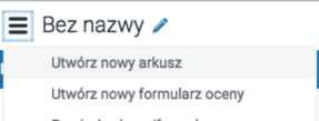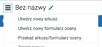 Przy aktywnym panelu bocznym narzędzi do oceniania przejdź do sekcji Arkusz/Formularz oceny. Można wybrać spośród zestawu arkuszy używanych wcześniej lub uruchomić Menedżera arkuszy i formularzy, aby utworzyć własny.