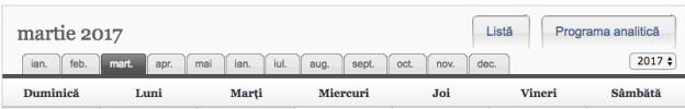 Atunci când se deschide calendarul, acesta va afișa luna și anul curente. Profesorul poate naviga între lunile anului dând clic pe filele lunilor, situate în partea de sus a calendarului.