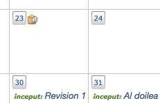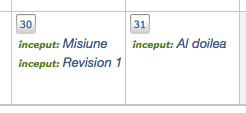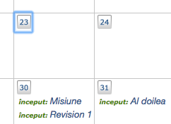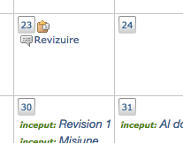 Pentru a comuta înapoi la vizualizarea calendar, dați clic pe butonul mod calendar.