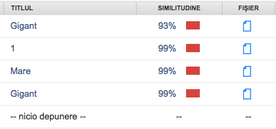 4. În coloana Similitudine există pictograme care indică procentul Indicelui general de similitudine și culoarea corespunzătoare acestuia, reprezentată pe o scară de la albastru la roșu.